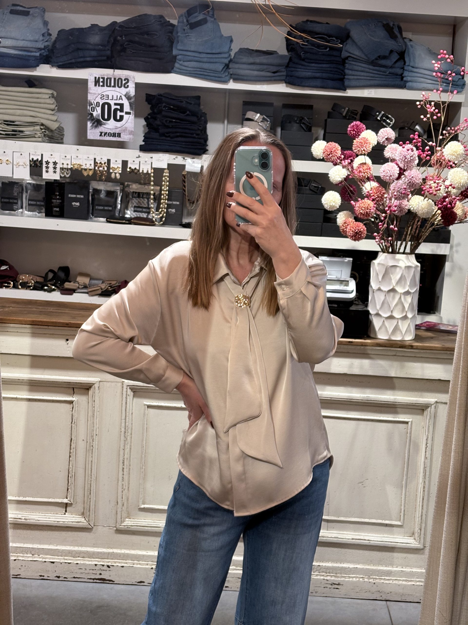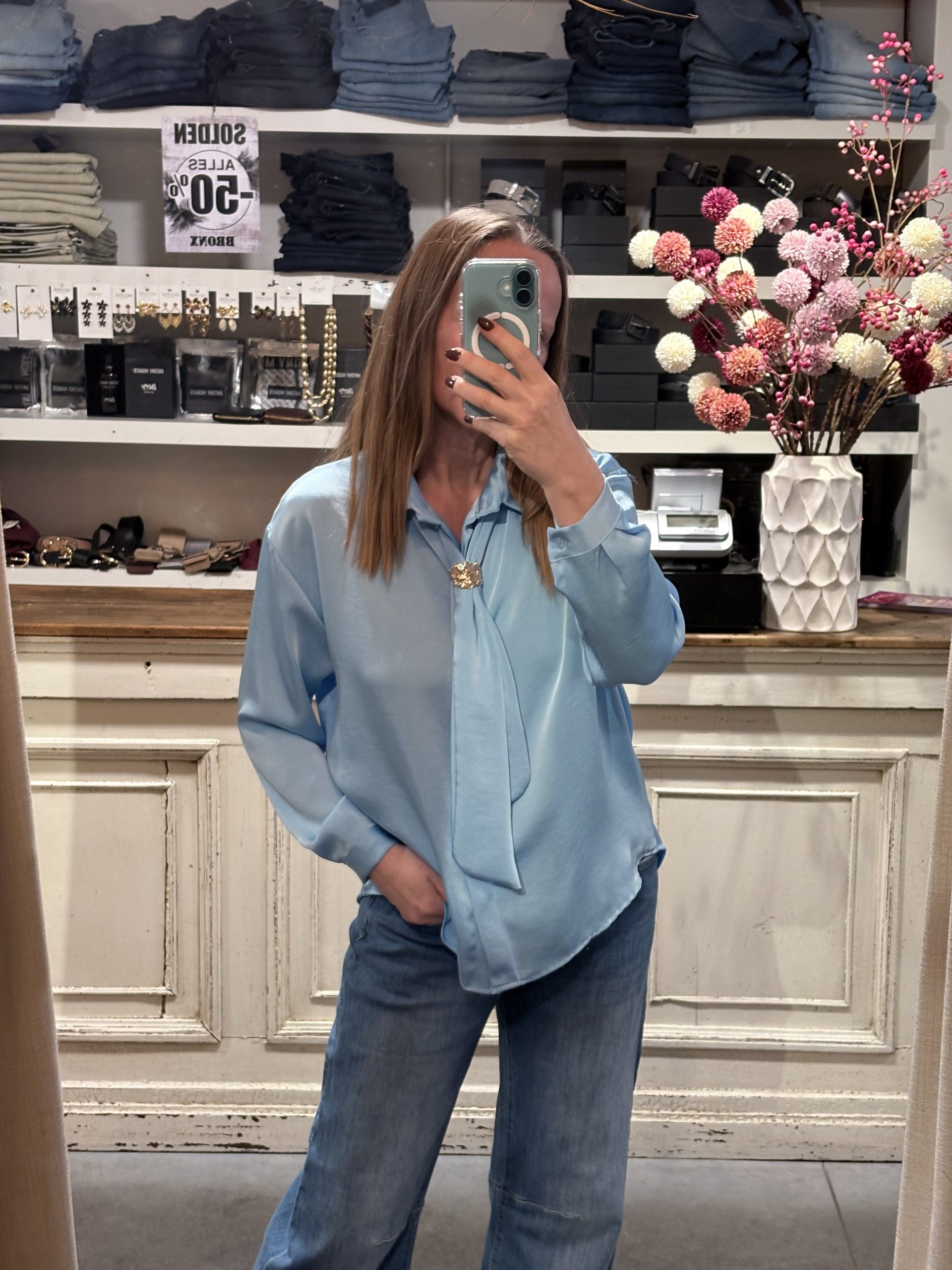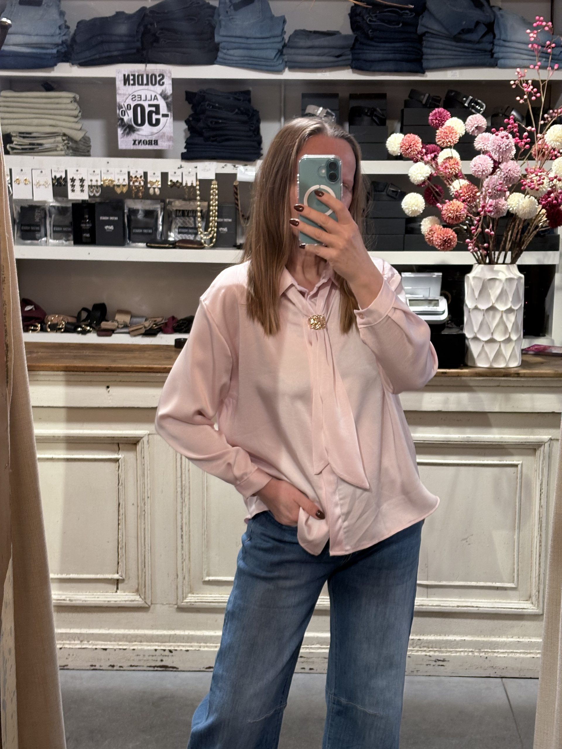 Satin bloesje met afneembaar sjaaltje