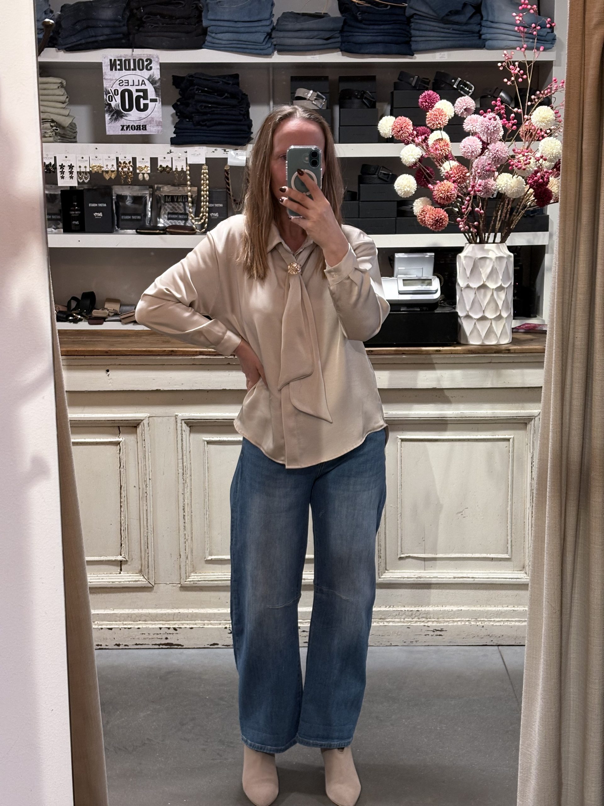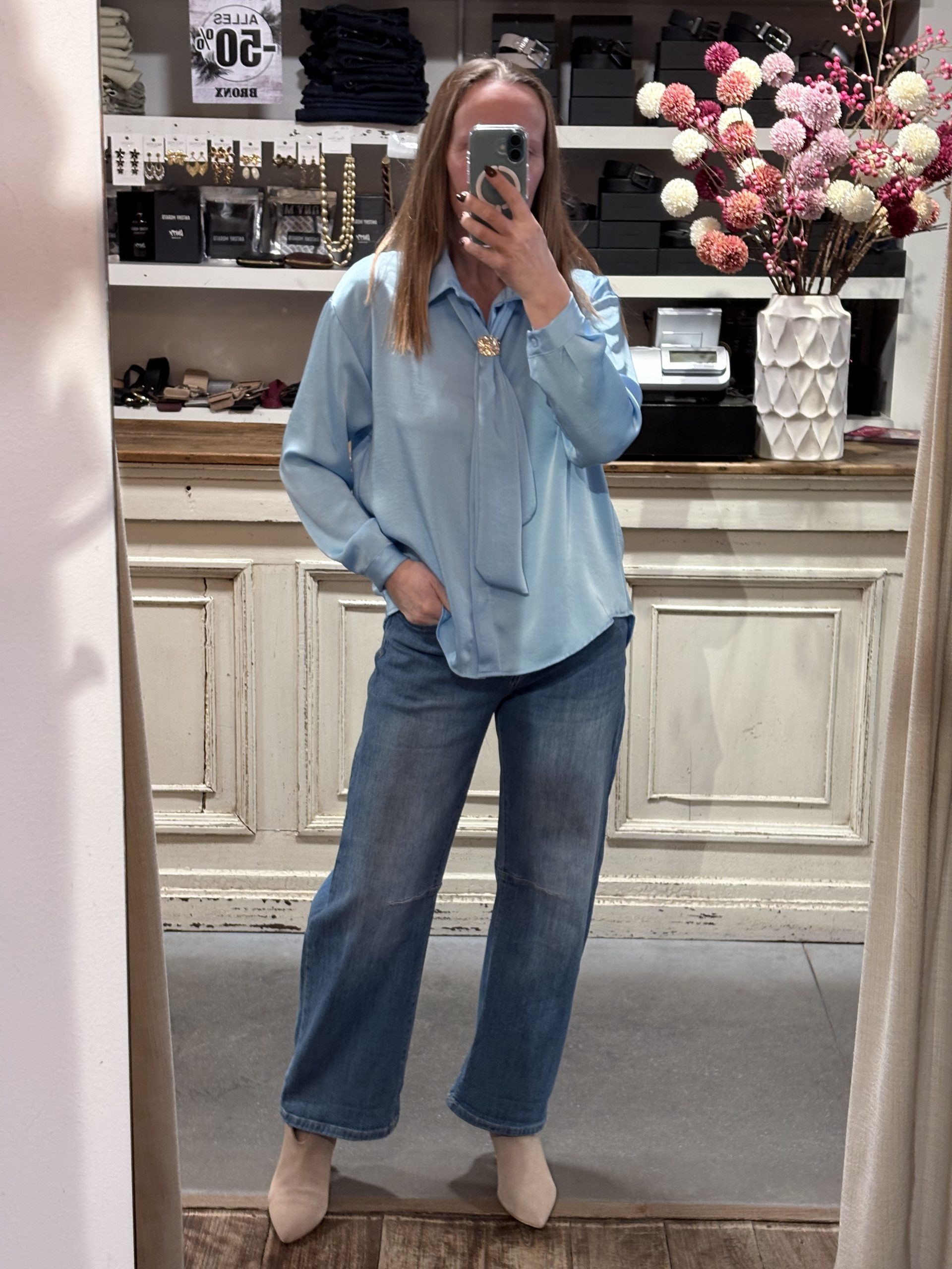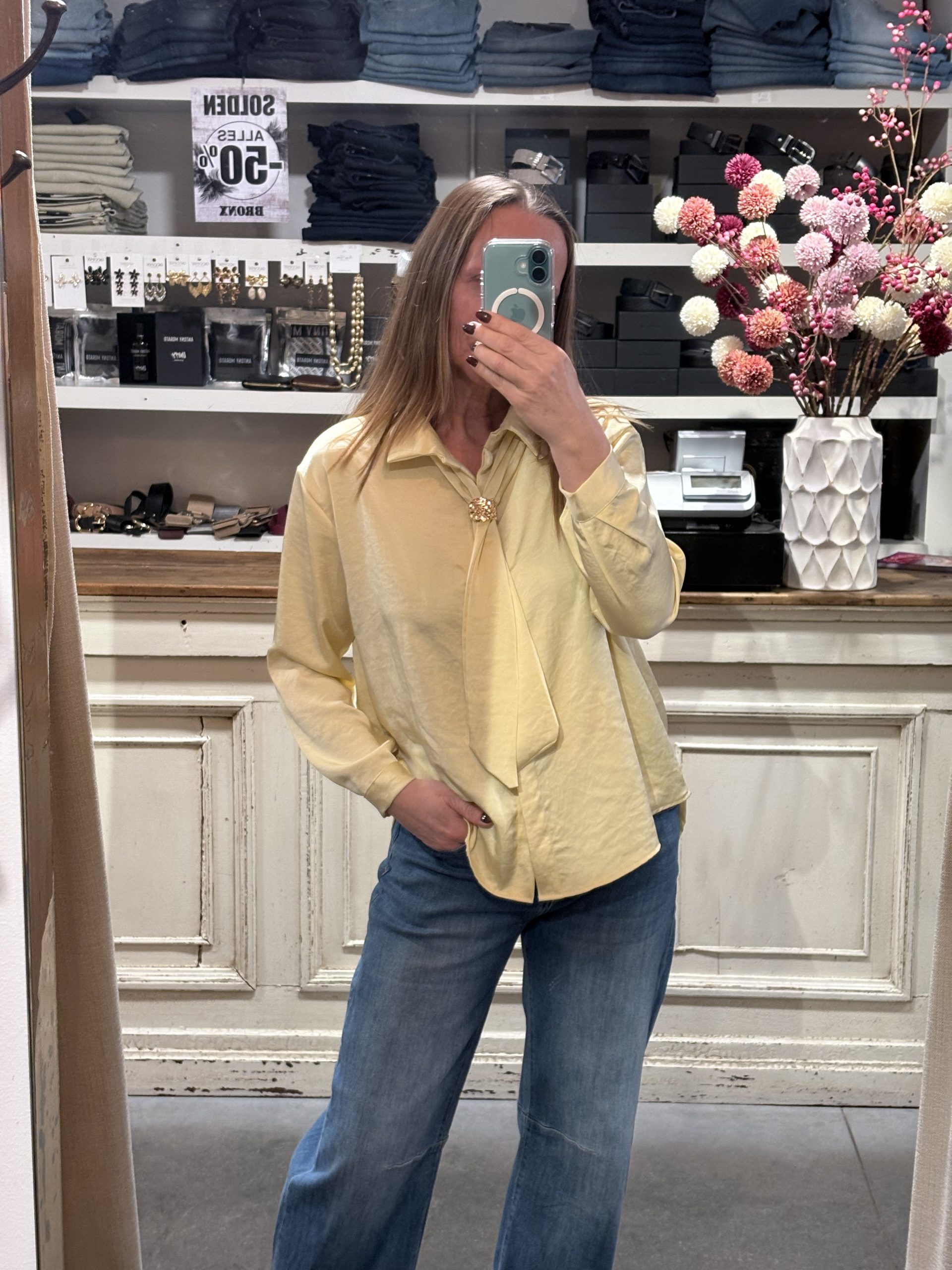 Satin bloesje met afneembaar sjaaltje