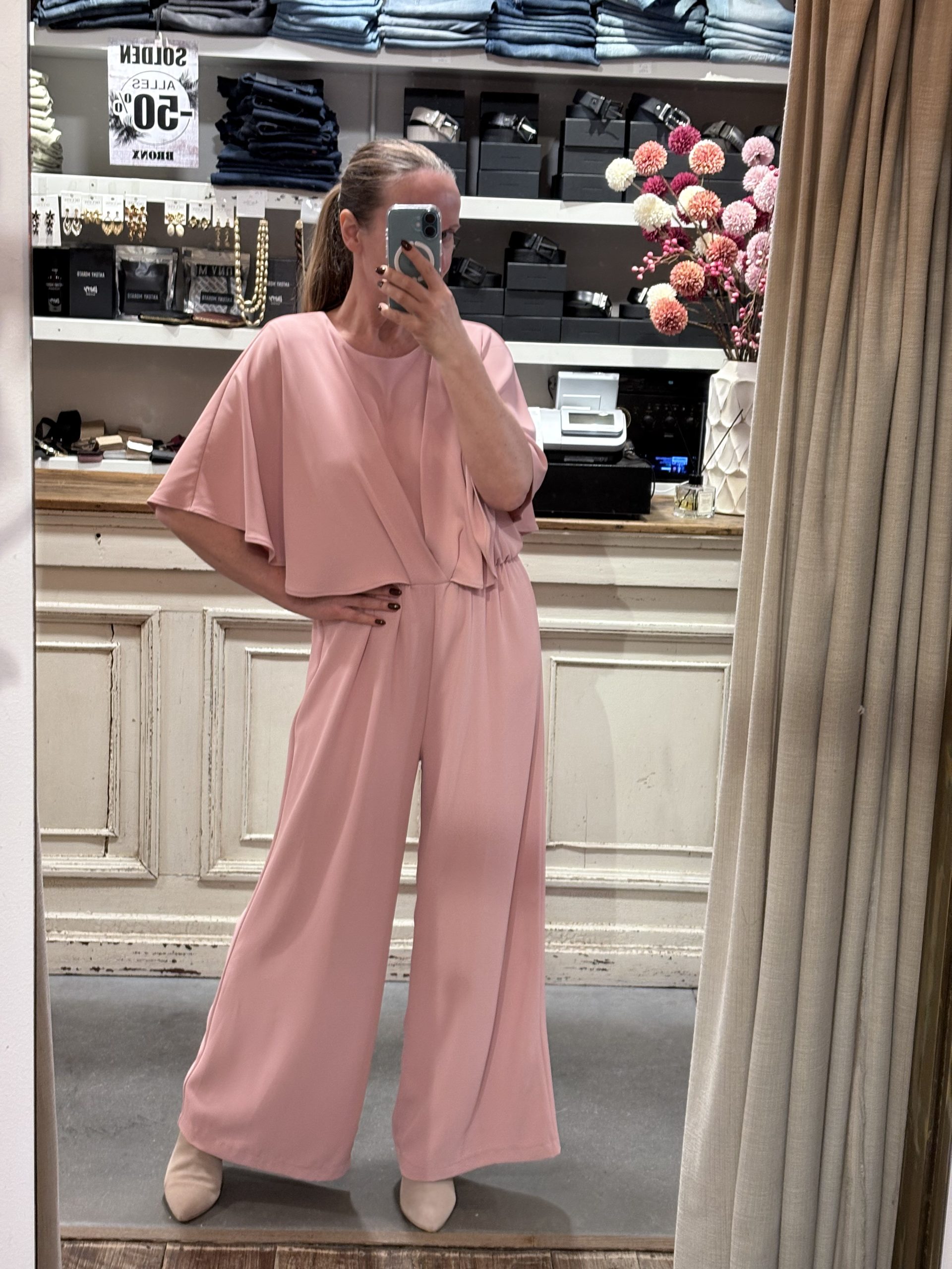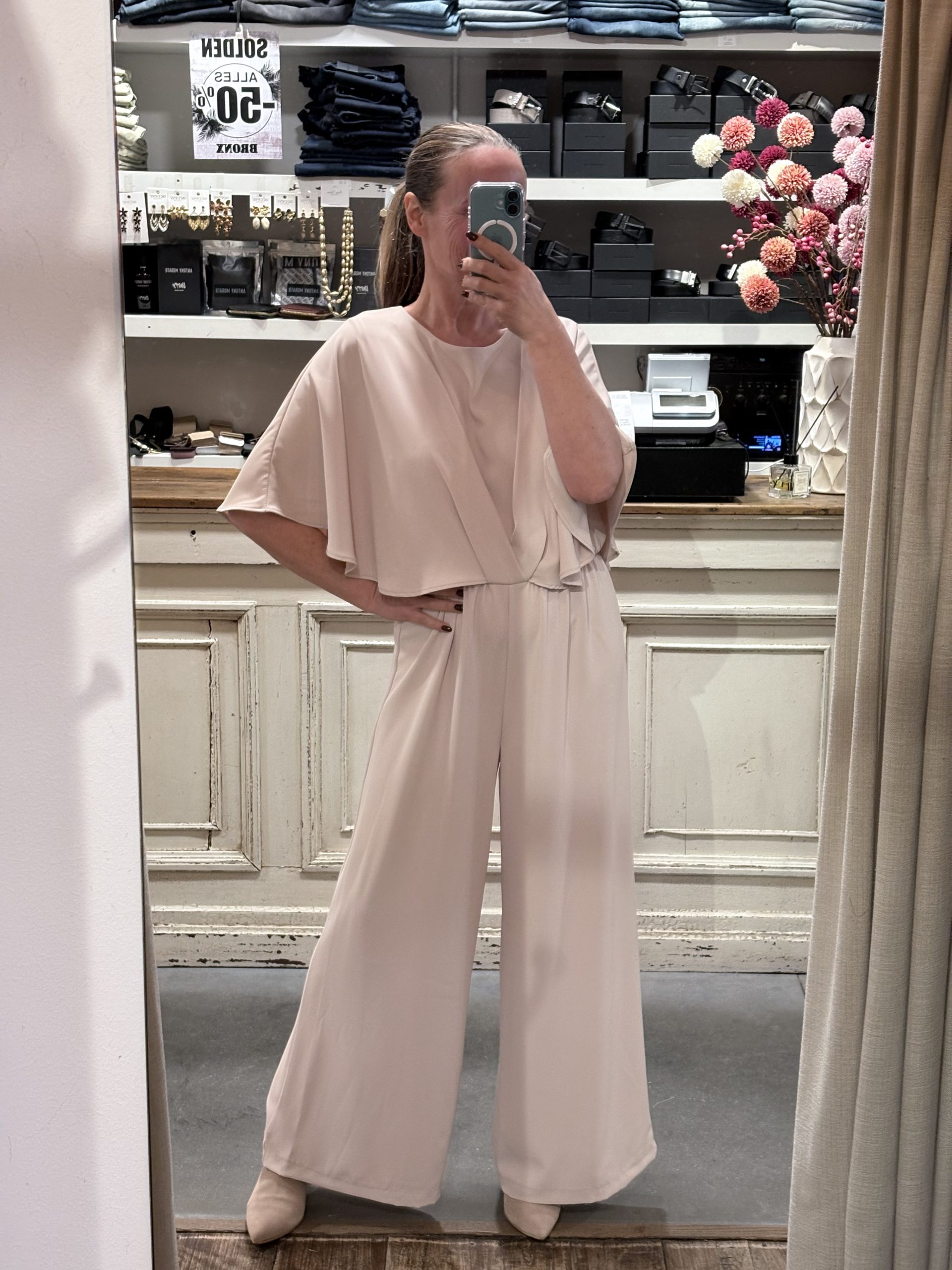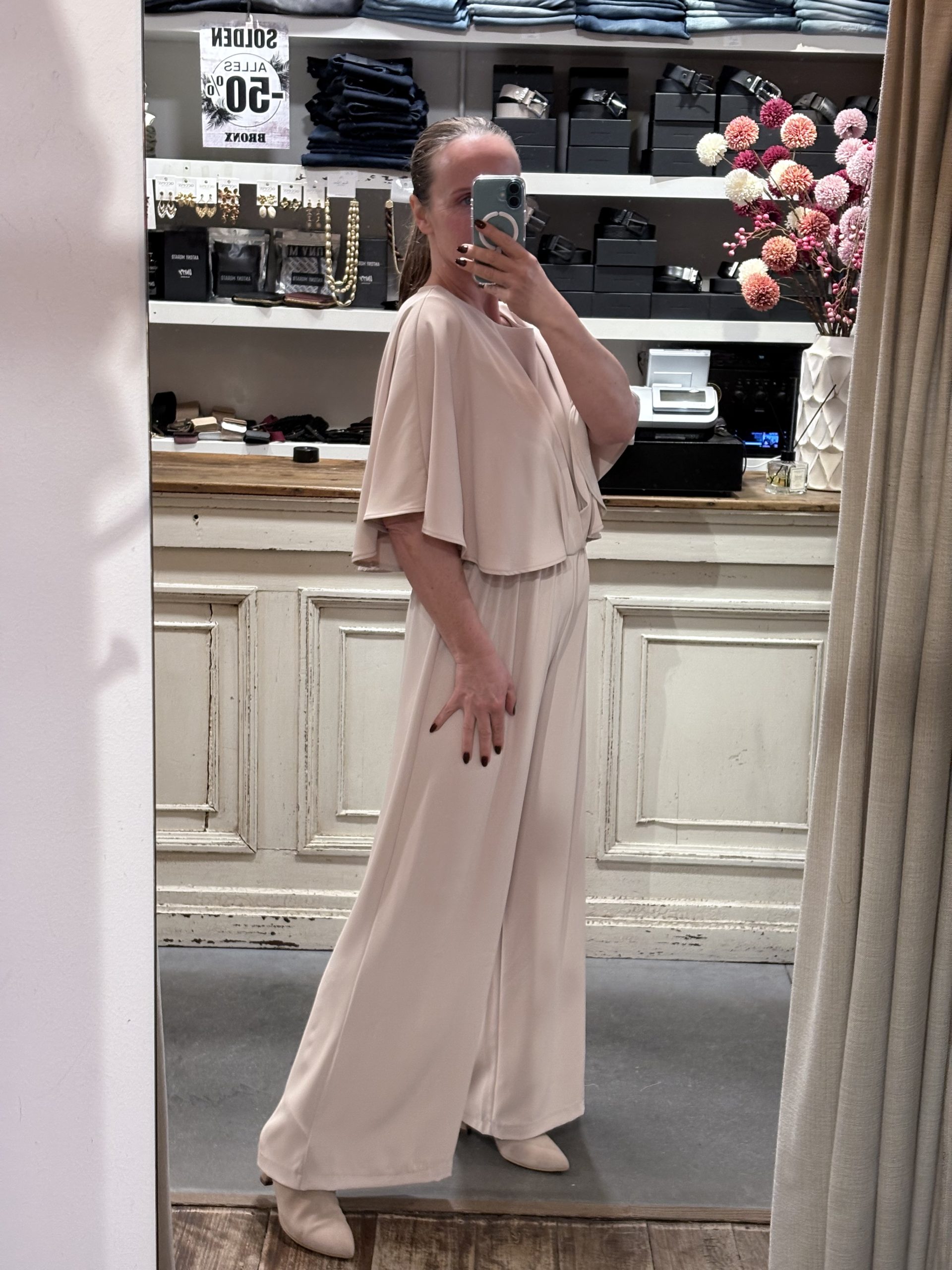 Broekpak met cape Valt ruim