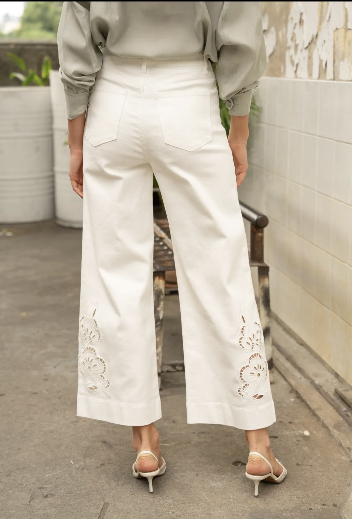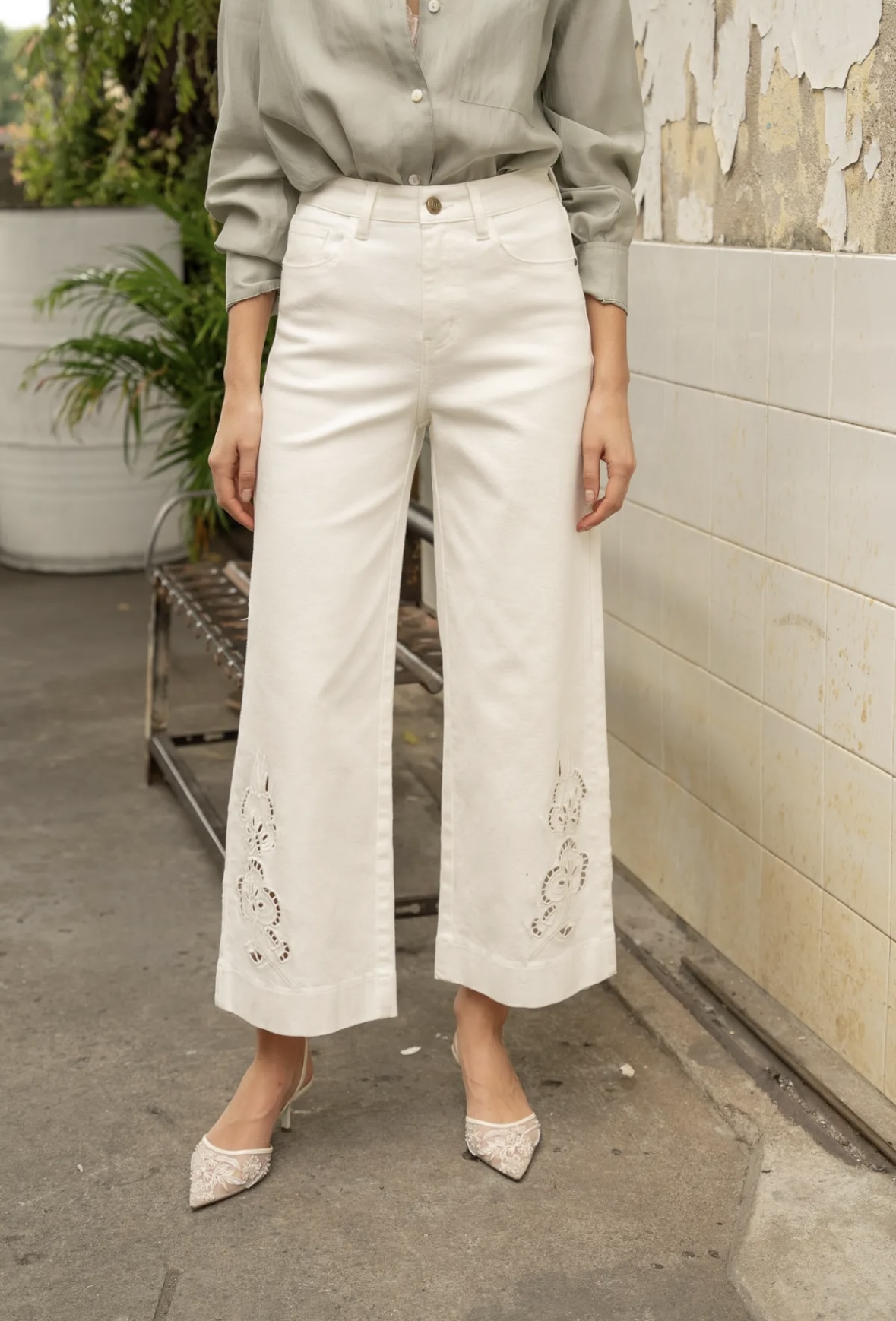 Wide leg/ Ankie jeans met uitsnijding