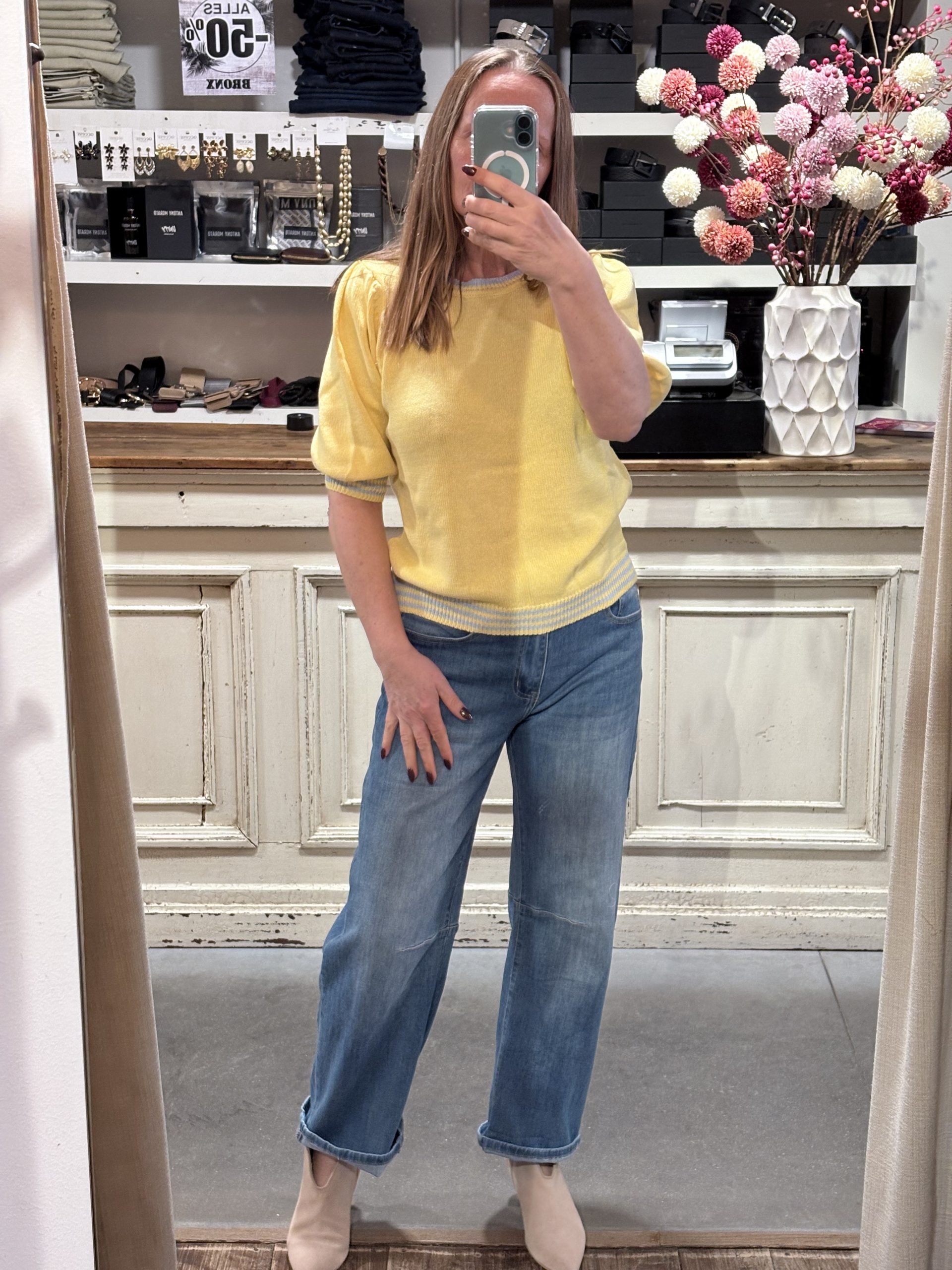 Pull met korte pof mouwen
