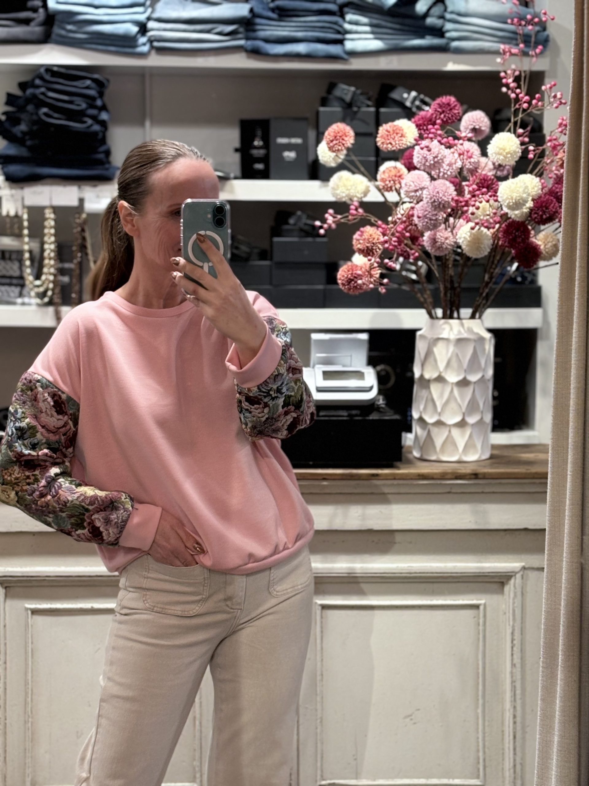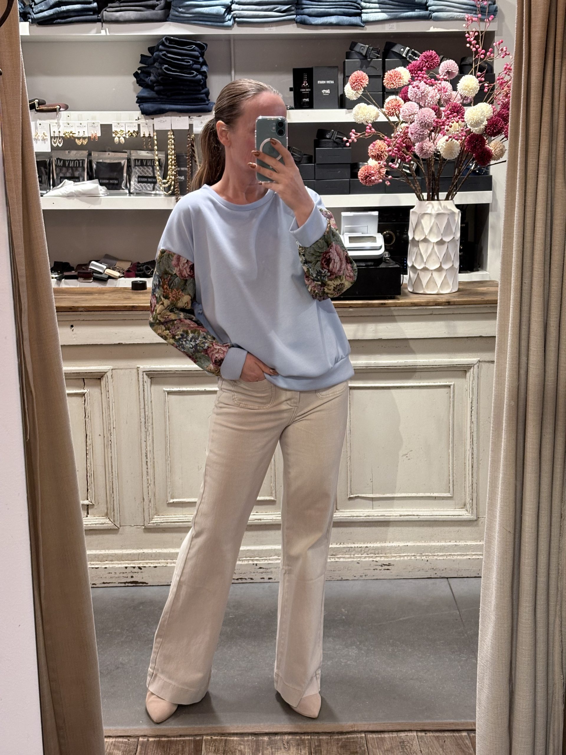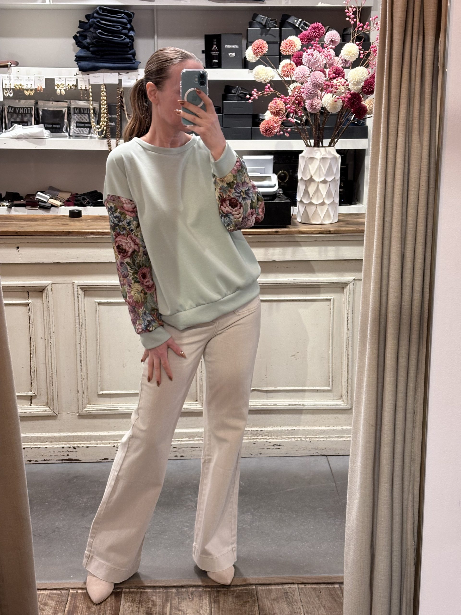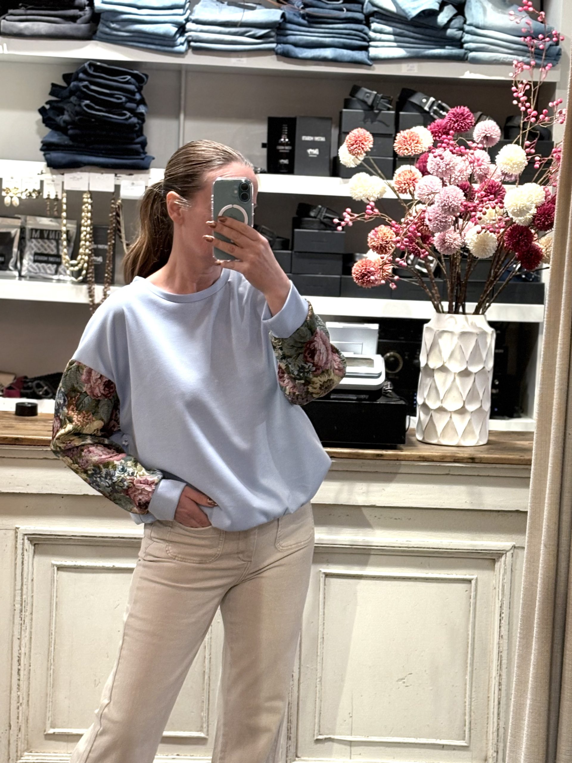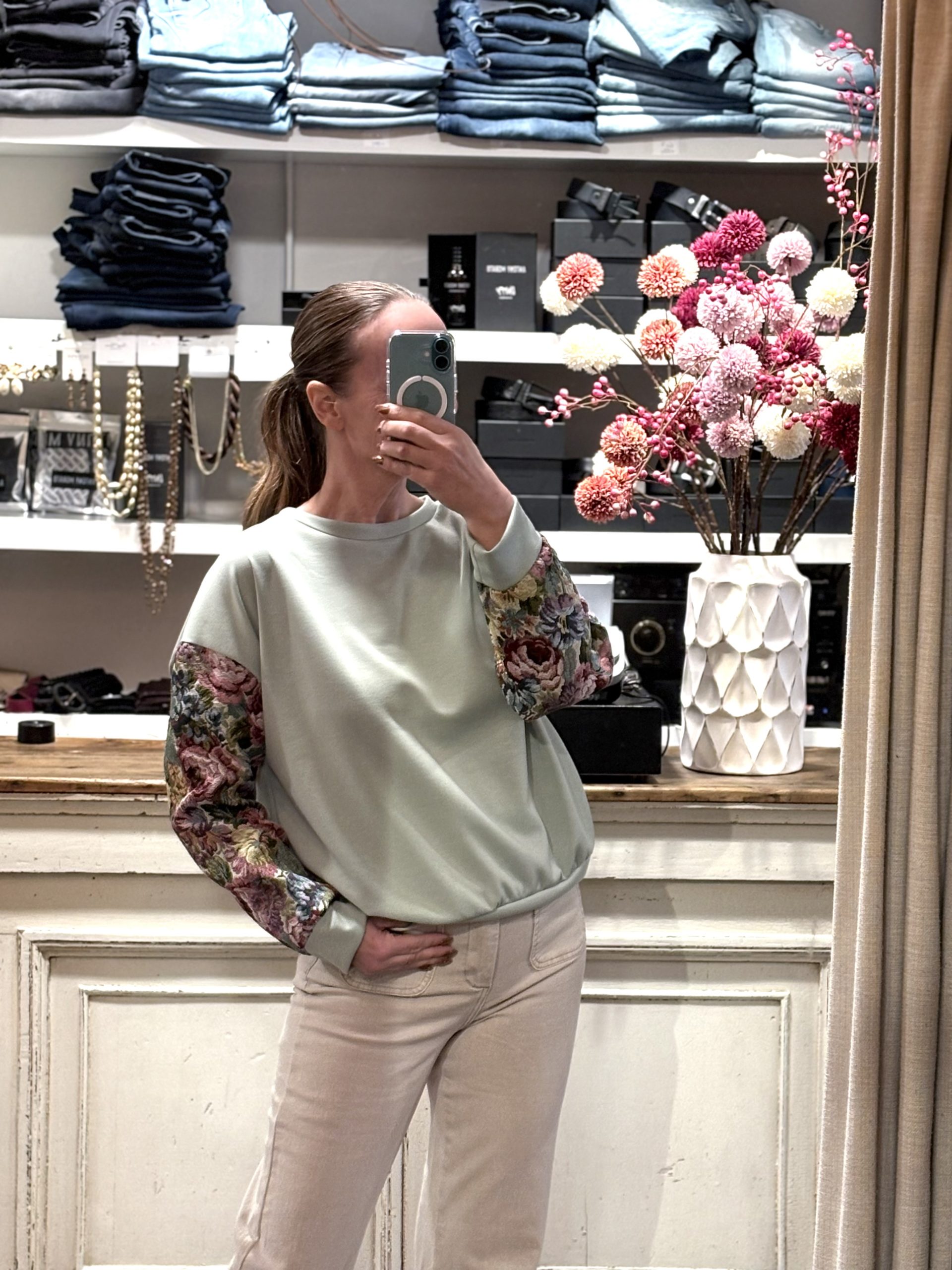 Ruim vallende sweater met bloemen mouwen Taille Unique ( valt ruim, kan tot 42)